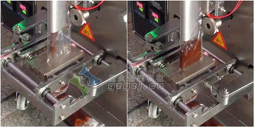 全自動醬體包裝機(jī)/辣椒油包裝機(jī)包裝成袋流程: