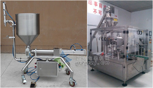 該設(shè)備給袋式包裝機(jī)、液體(醬體)灌裝機(jī)組合成的新型設(shè)備,所以分別用兩個設(shè)備來表示給袋式醬料自動包裝機(jī)的設(shè)備實(shí)拍圖。