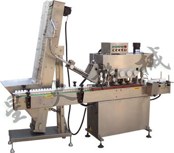 該機(jī)種設(shè)計(jì)新穎獨(dú)到、機(jī)械扭矩控制智能化,并且操作與調(diào)節(jié)十分便利,操作人員只需將瓶蓋置于瓶口上,瓶子在向前運(yùn)行的過程中,瓶蓋被三組搓蓋輪自動(dòng)擰緊。既可用于單機(jī)生產(chǎn),更是連線生產(chǎn)的理想機(jī)型?煞奖愕厣(jí)為完全的自動(dòng)旋蓋機(jī)ASP,我們有提升式、斜盤式、震蕩式等落蓋系統(tǒng),可根據(jù)實(shí)際需要選配。